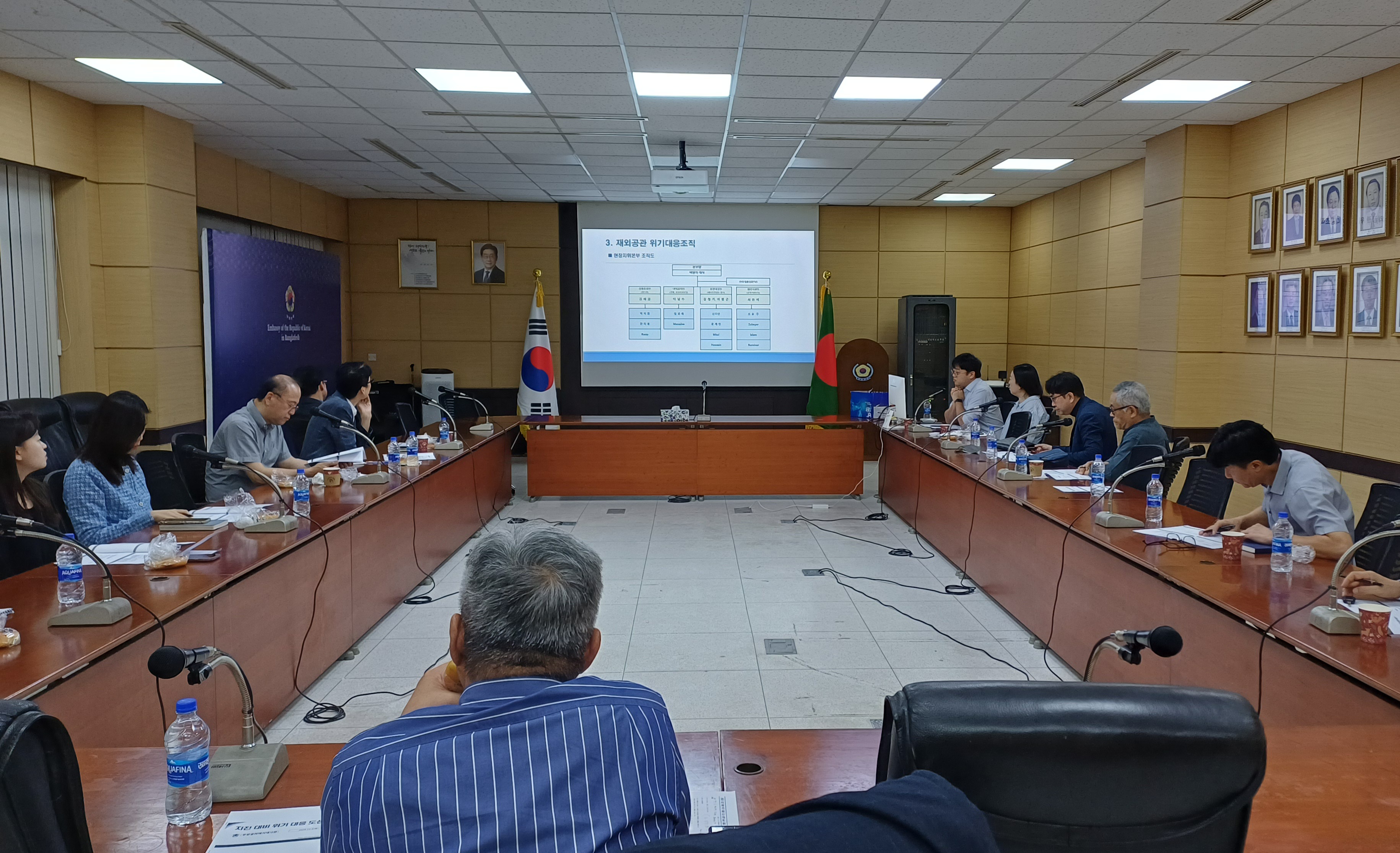 우리 대사관은 12.9(화), 대사관 대회의실에서 지진 대비 위기대응 도상훈련을 시행하였습니다. 최근 주재국에 증가하는 지진 현상을 대비 하고자 준비된 이번 훈련에는 재외공관 직원들 및 한인회, 선교사회, 한인학교, 공공기관장 등이 참석하였습니다. 이번 훈련에서는 집결지 준비, 한인 비상 연락망 구축의 본격화, 비상 상황 시 각 단체의 행동방안 등 논의도 진행되었으며 주변국의 사례들도 함께 살펴보며 필요한 정보를 공유하는 기회가 되었습니다.